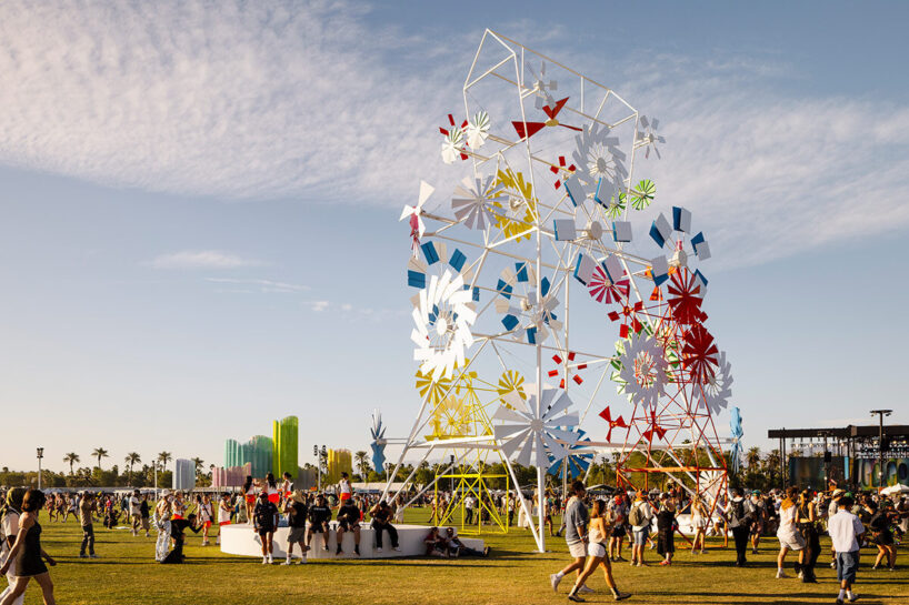 En la pasada edición de Coachella, cinco artistas interactuaron emocional y estéticamente con el público con tres piezas sorprendentes: Taffy, un espectáculo con siete imponentes cilindros de la diseñadora canadiense Stephanie Lin, Le Grand Bouquet, una instalación floral del colectivo de diseño francés Uchronia, y como tercera participación Take Flight un conjunto de torres de 18m de altura del estudio de diseño londinense formado por Isabel Gibson y Helen Chesner.