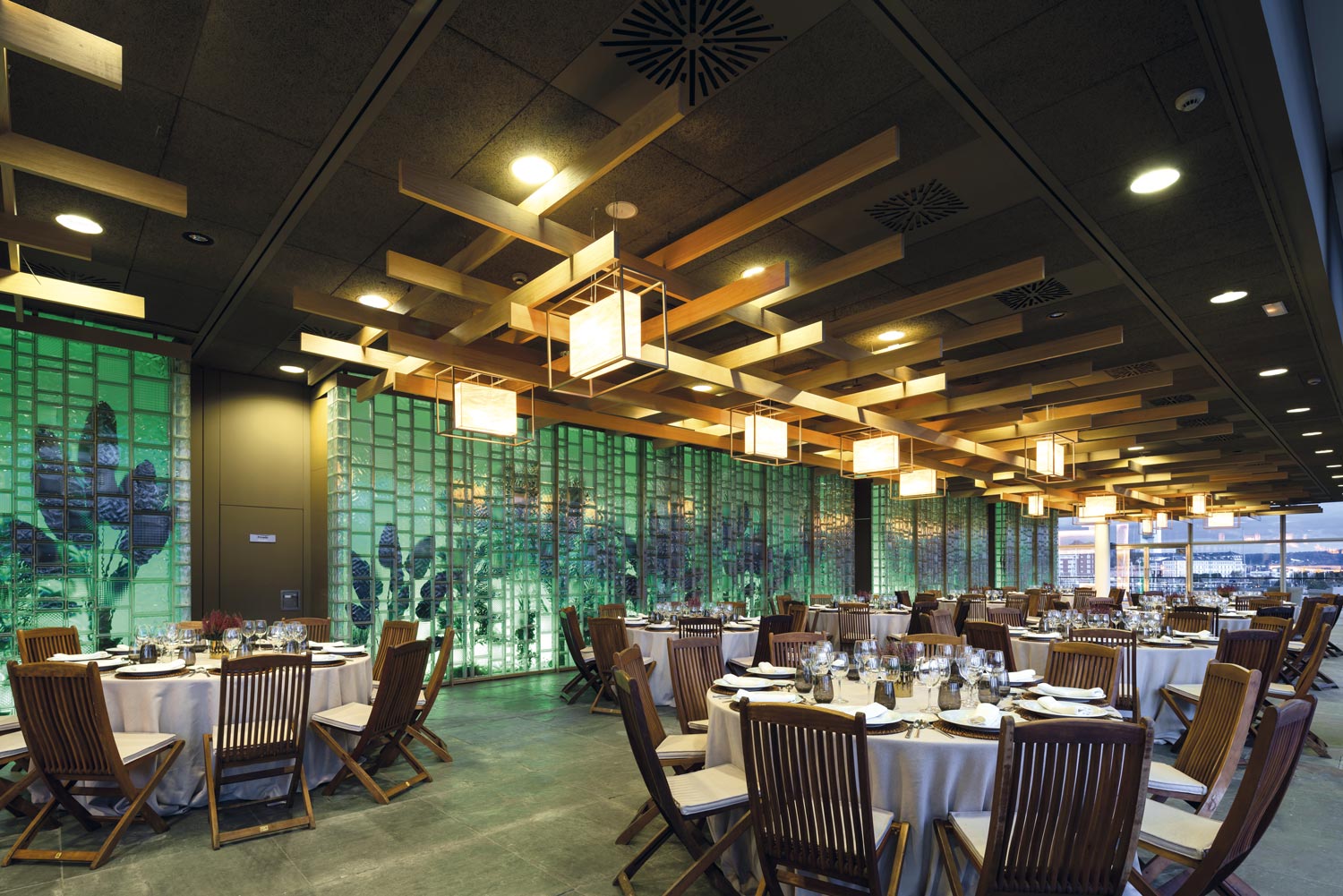 Con vistas al jardín y a la Ría, el Salón Dorado (de 416m2) mezcla la luz natural que aporta la terraza que lo rodea, con la iluminación artificial de su escultórico techo de varillas. Se considera el lugar idóneo para celebrar una conferencia, un coloquio o cerrar por todo lo alto un congreso con una cena de gala. El Salón Enredos (de 242m2), uno de los espacios más versátiles de la finca, se sitúa en la planta baja con acceso al jardín y a la Terraza de los Helechos, y es ideal para pequeños eventos (una tendencia en auge en el sector) que podrían combinar la reunión en el salón, un coffee en la terraza y el cóctel en el majestuoso jardín con arces japoneses, cascadas y láminas de agua. Actualmente el Salón de Enredos se ha transformado, de la mano de Cega Audiovisuales, con set audiovisuales para eventos presenciales, virtuales o híbridos.