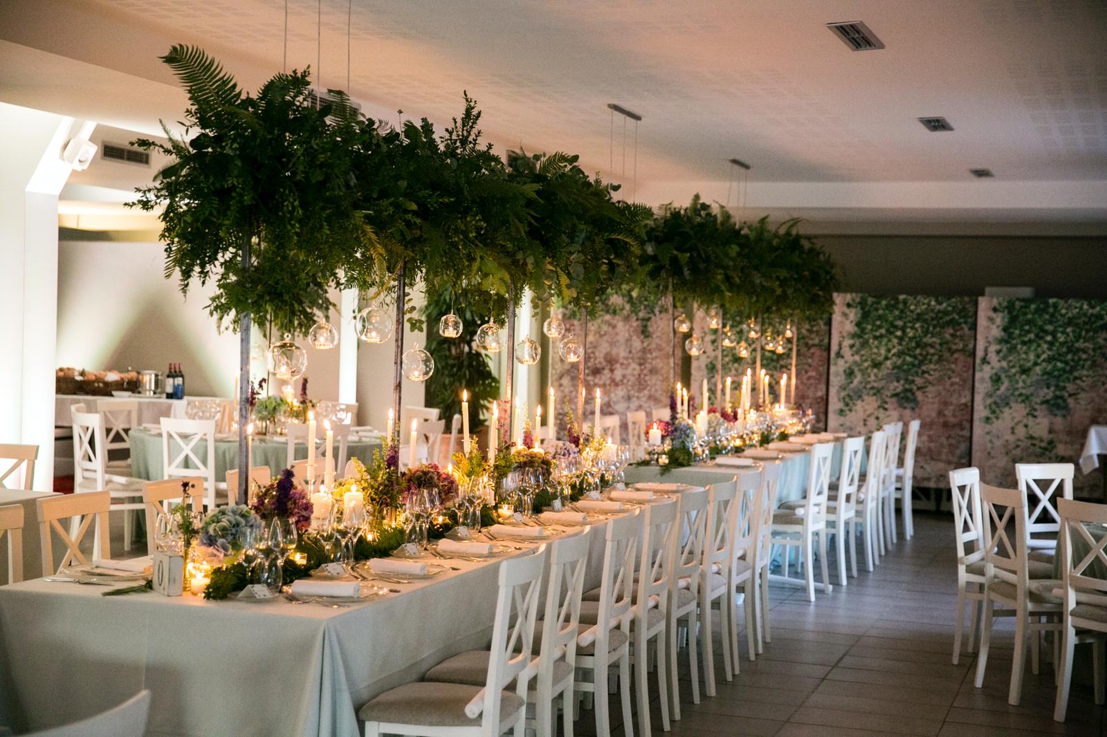 Uno de los jardines, con vistas a la fachada principal de piedra y escudos, puede albergar a 400 invitados. Ya dentro del Pazo descubrimos un pabellón acristalado integrado en un bosque con capacidad para 300 asistentes y una cocina de unos 180m2 con chimenea y lareira (espacio de piedra donde está el fuego) adecuada especialmente para eventos gastronómicos con encanto para unos 30 o 40 asistentes. Debajo de la cocina hay una sala con mesas alargadas en forma de U, con cristaleras que dan al jardín. Muchos rodajes de anuncios de moda se han hecho aquí y eventos con prensa especializada en moda e influencers.