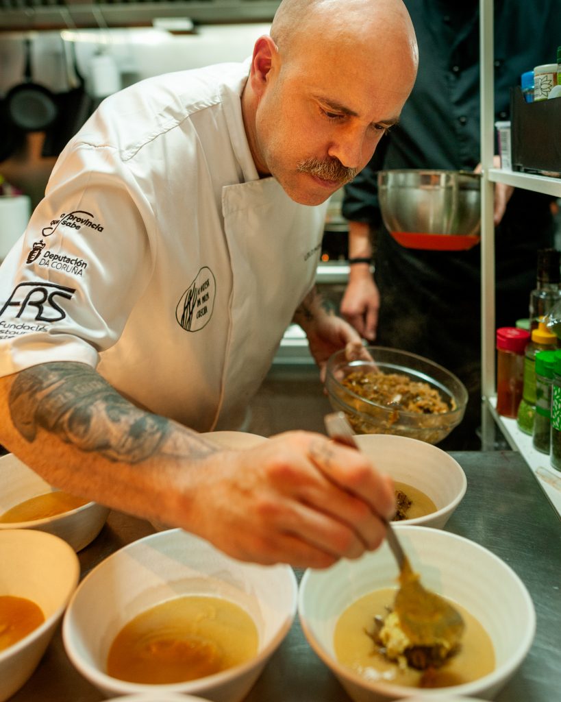 Situado en la localidad de Santa Comba, a medio camino entre Santiago de Compostela y la Costa da Morte, dirigido por el chef Manuel Costiña, galardonado con 2 estrellas Michelin y dos soles Repsol, ofrece mucho más que una simple comida: es una experiencia sensorial.