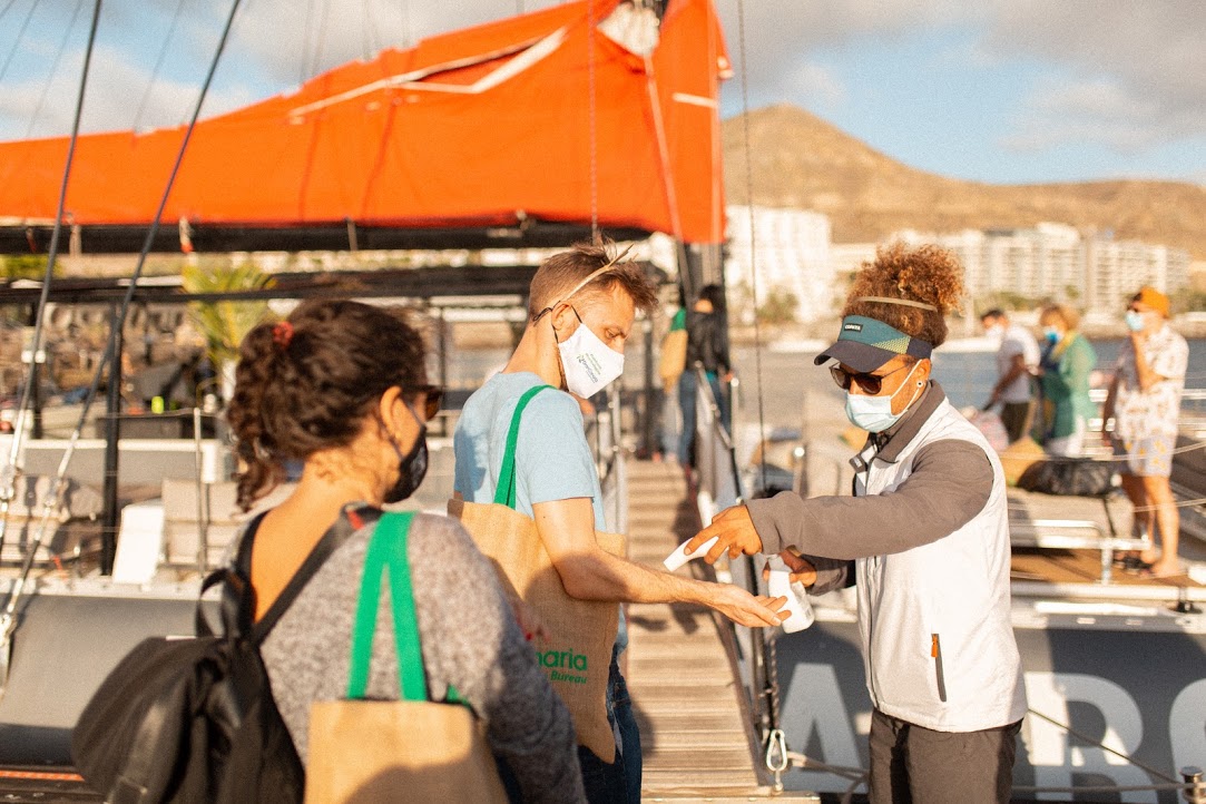 De nuevo en ruta hacia el sur de la isla, el grupo de profesionales MICE se preparaba para disfrutar de una experiencia junto al mar, en la Isla de Anfi, junto a un muelle deportivo, un entorno privilegiado de la costa de Gran Canaria, donde está el Maroa Club de Mar. La DMC Ineventing se encargó de organizar esta jornada en la que el grupo pudo elegir entre varias actividades: bautismo de buceo, moto acuática, parasailing o relajarse en el Club que cuenta con la mayor terraza de todo el Archipiélago. Después de comer, el catamarán Five Star les esperaba para llevarles a ver la puesta de sol, con música en directo a bordo.