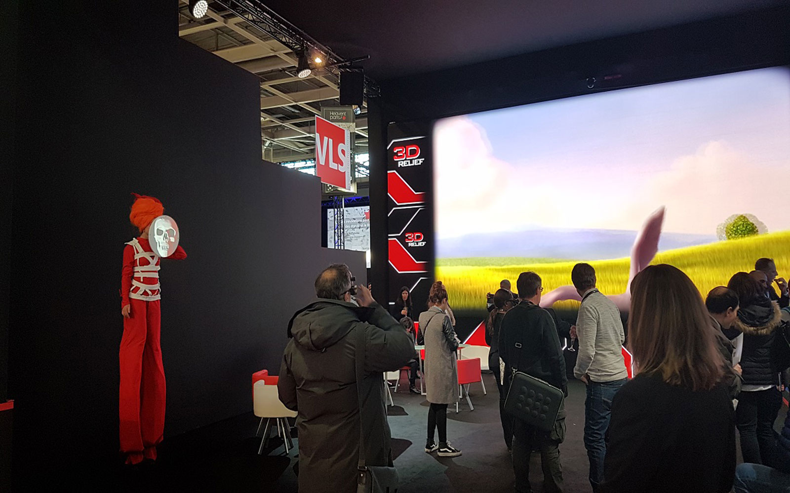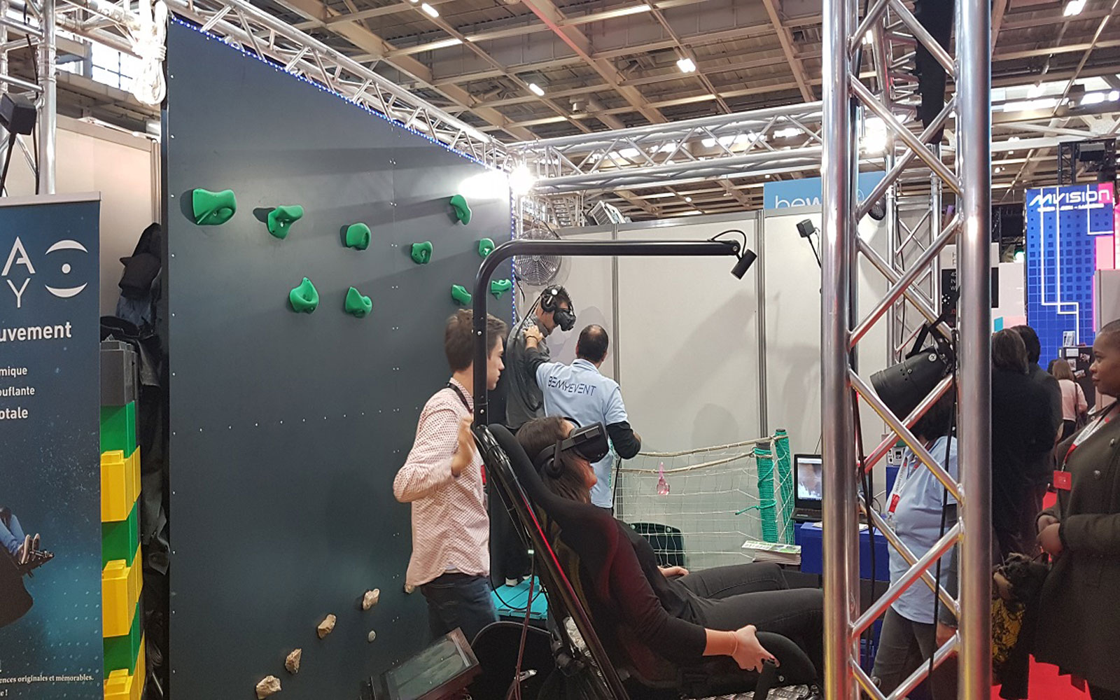 Lo ves en evento days… pero triunfa también en Francia: varios stands proponían actividades inmersivas, donde las gafas se combinan con aparatos en movimiento para hacer vivir un 3D, 4D, 5D según las versiones….