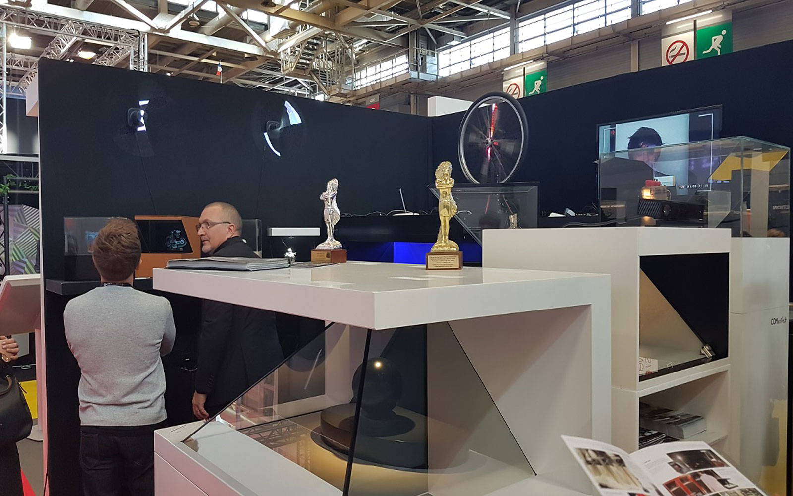 La imagen sale de la pantalla: La empresa Be In Relief montó un espacio donde probar soluciones de hologramas desde una pantalla.Pero los hologramas no son solo pantallas, sino que también estuvieron presentes con estos tótems, solución perfecta para captar la atención en un punto de venta o un stand en ferias.