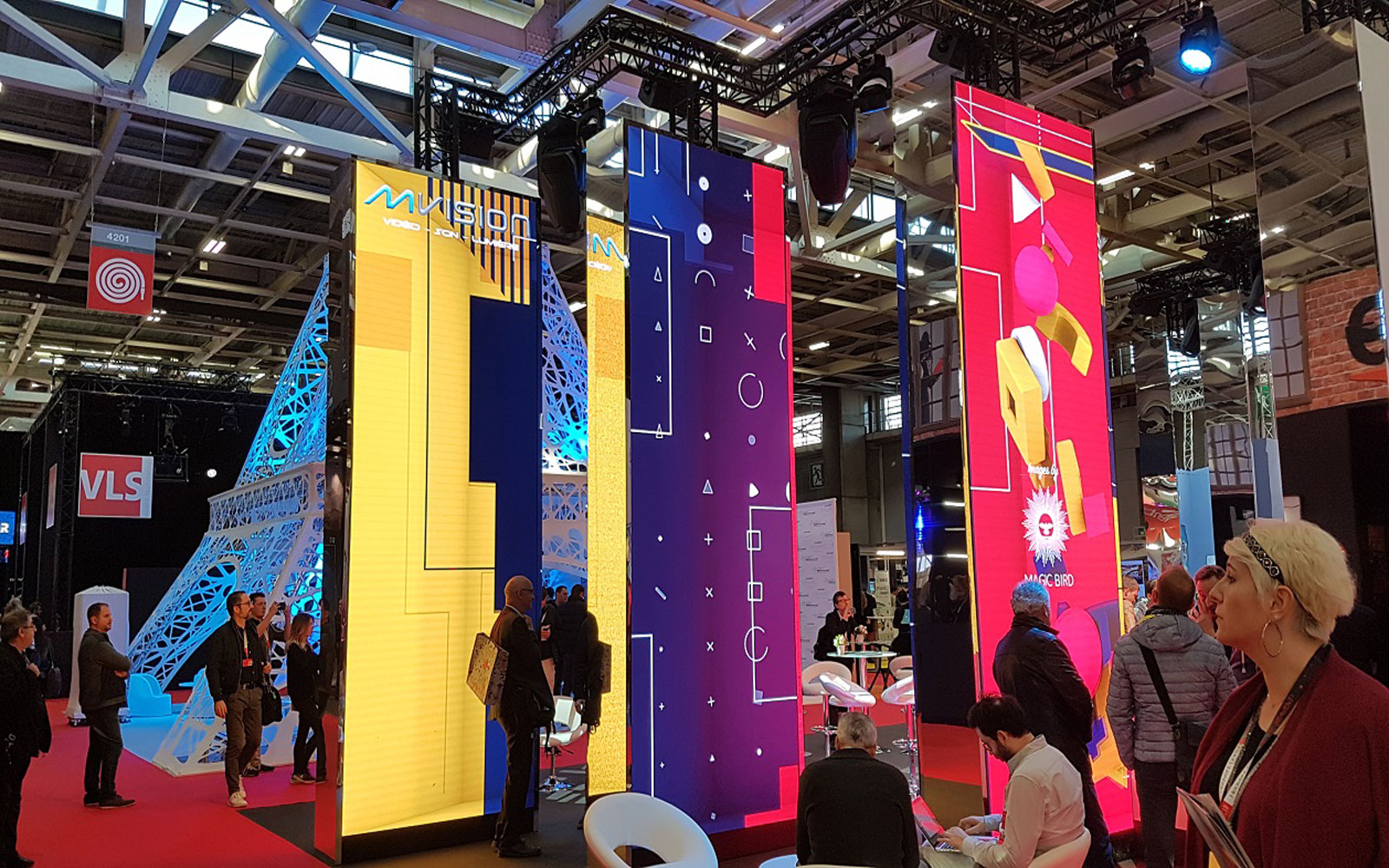 Una solución de ambientación y decoración que captó nuestra atención: los paneles de LED como solución para acotar espacios, creando una estética impactante y dinámica. De hecho el concepto de paneles móviles es un concepto que tiene algo de presente, ¡y mucho futuro!