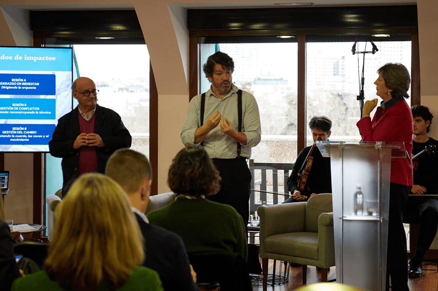 El programa de la Escuela Superior de Música Reina Sofía (centro de referencia internacional en la formación musical), MusicalThinkers (consultora especializada en cultura y liderazgo a través de la música), Apertia Consulting (consultora boutique en psicología de empresa y estrategia organizativa) y La Oficina del CEO (consultora de acompañamiento a la alta dirección), está principalmente dirigido a departamentos de Recursos Humanos, alta dirección y equipos de liderazgo, e integra una doble perspectiva: psicológica y con metodología experiencial respaldada en la música. ¿Cómo funciona?