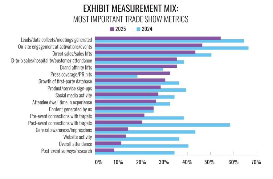 Más selectivos. Se invierte en experiencias mientras se redimensiona o se reduce el número de eventos en los que se participa. El 43 % de los encuestados afirma que exhibirá en más ferias este año, lo que supone un descenso del 13 % respecto al año pasado. Es decir, los responsables de marketing están siendo más selectivos a la hora de decidir dónde invertir su presupuesto, pero al mismo tiempo elevan la experiencia in situ para obtener el máximo retorno de la inversión.