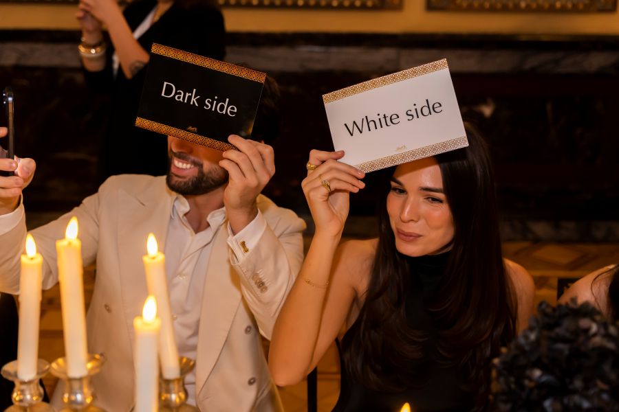 Pero más allá del producto, el evento apostó por un concepto claro y fácil de leer. Blanco o negro. Los 22 invitados acudieron siguiendo este código, acompañados por alguien vestido en el color opuesto. Una decisión sencilla que, sin embargo, convertía la cena en una escena visual coherente, casi performativa, donde cada detalle reforzaba la narrativa.