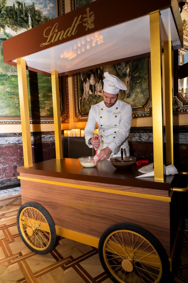 El cierre llegó de la mano del maestro chocolatero David Pallás, que transformó el momento final en un espectáculo en directo. Cada asistente recibió una tableta Lindt personalizada, un gesto que añadía valor emocional y reforzaba el recuerdo de marca.