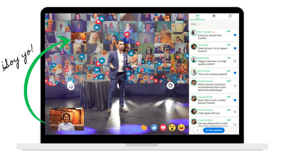 Se trata de una plataforma de interacción en tiempo real que convierte al participante en el protagonista del evento. Asegura el engagement y la obtención de datos estratégicos en cualquier formato del evento, presencial, online o híbrido.