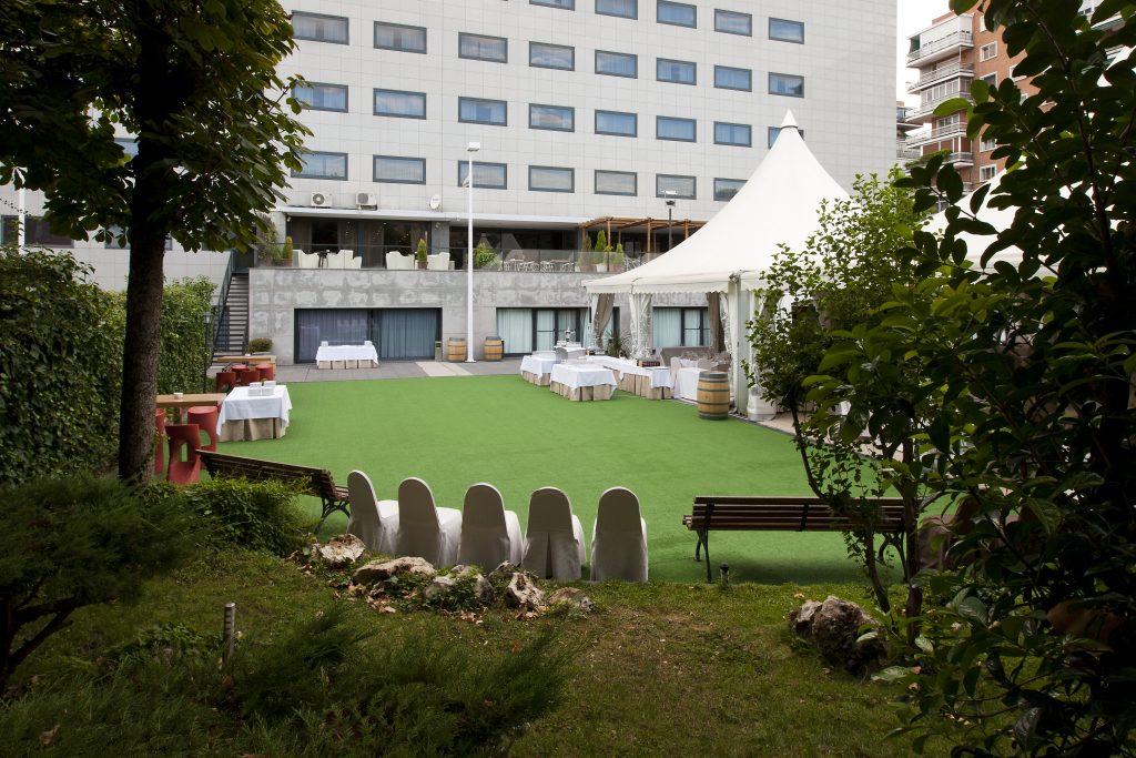 NH Madrid Ventas es uno de los ejemplos perfectos para tomar un respiro en el medio de la capital gracias a su amplio y frondoso jardín, que cuenta con una gran carpa y una terraza al aire libre con vistas a la piscina. Además, el hotel ofrece una amplia variedad de menús personalizados y servicios de catering adaptados a cualquier modalidad de evento, desde galas hasta cócteles y reuniones empresariales.