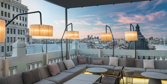 Por ejemplo, para organizar un pequeño afterwork, la elección puede ser una terraza en la azotea, como la del hotel NH Collection Madrid Gran Vía; Uno de los mejores rooftop en el centro de Madrid. Un escenario perfecto, con vistas espectaculares a una de las calles más famosas y representativas de la capital y magníficas puestas de sol que generará recuerdos inolvidables entre los asistentes. (Sin hablar de las probables y múltiples publicaciones en redes asegurando el éxito más completo de la convocatoria).