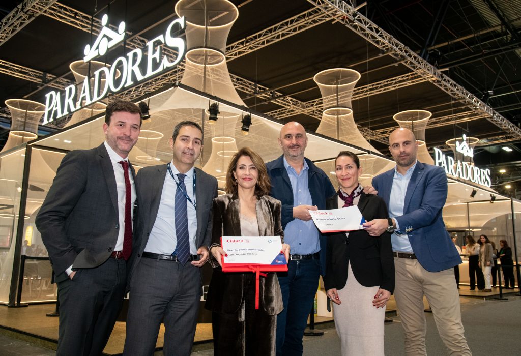 Paradores presenta un stand que se caracteriza por su arquitectura a base de columnas, paredes o techos que parecen no existir, lo que crea un ambiente bastante luminoso. Otra cosa que llamó la atención, fue que incluyeron la gastronomía típica de la empresa. No solo fue premiado como mejor stand, sino también como ´stand sostenible´.
