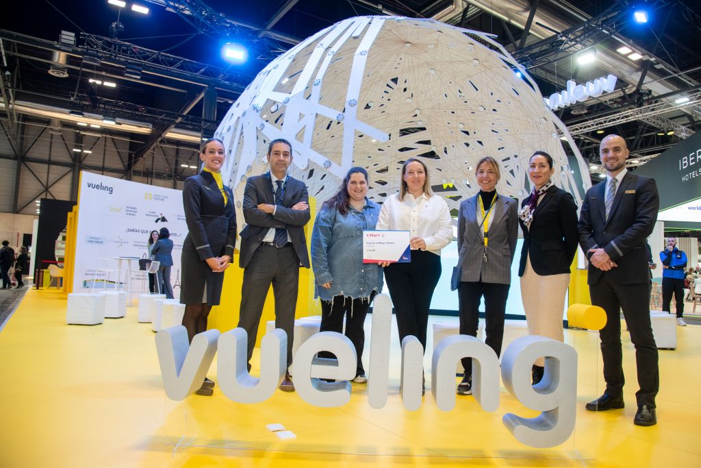 En esta ocasión, el stand de Vueling quiso crear una especie de storytelling sobre la historia de la compañía y el compromiso que han tenido con la sostenibilidad mediante el diseño del stand. Contaba con una estructura formada por las líneas trazadas que indicaban todas las rutas de vuelo de los últimos 20 año. Los asistentes podían ingresar en estar y obtener información sobre cada destino mediante una pantalla interactiva, lo que hacía que se tuviese una experiencia interactiva.