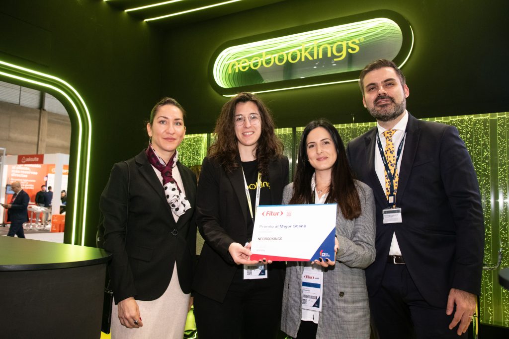 Neobookings apuestó por un diseño un poco más moderno en su stand. El color verde de su marca resalta junto al negro, creando así una imagen un poco futurista, moderna. Otros detalles que llamaron la atención fueron los páneles líquidos y curvos que tenían iluminación.
