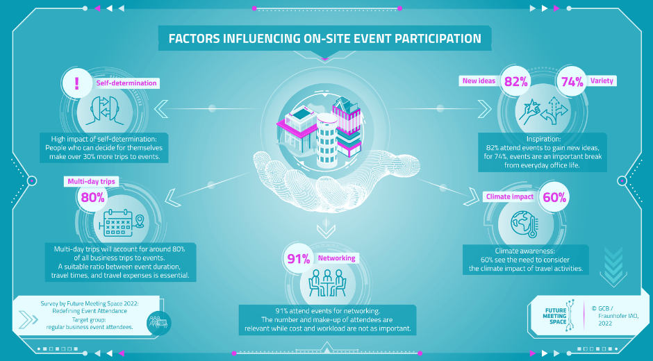 Nuestro sector ha cambiado (y sigue haciéndolo), en gran parte debido a la pandemia que ha traído nuevos retos como la inflación, la falta de talento, equipos quemados, nuevas formas de trabajar y nuevas exigencias, en materia de sostenibilidad o innovación, entre otras. Además de otros temas, este escenario plantea una redefinición de la asistencia presencial a los eventos, por eso, desde el German Convention Bureau (GCB) y el Instituto Fraunhofer de Ingeniería Industrial (IAO), junto con sus socios de investigación, han realizado un estudio para tratar de identificar patrones cambiantes en los turistas de negocios y la asistencia a eventos presenciales. La investigación se estructuró en tres fases, cada una acompañada de una encuesta enfocada en diferentes aspectos. Veamos cuáles han sido sus conclusiones.