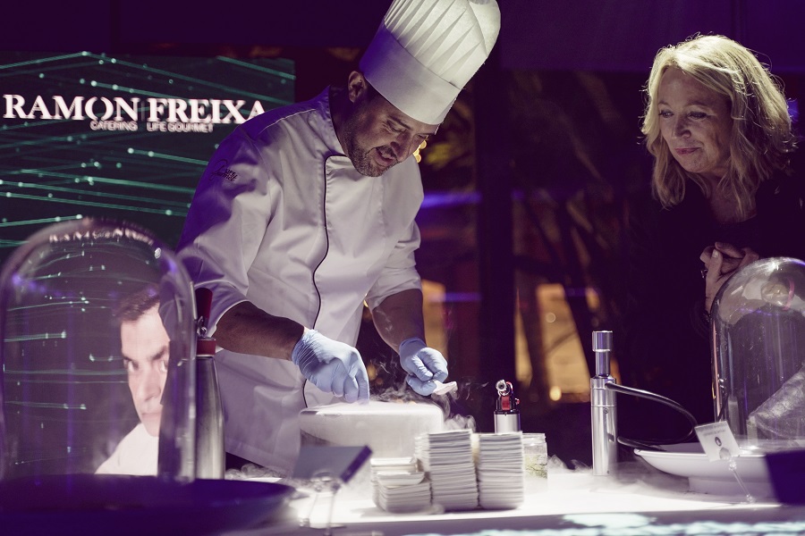 El formato escogido fue un showcooking, siempre espectacular, en este caso a cargo de Ramon Freixas con una estrella Michelin, en un marco tan sofisticado como el de Asia Gardens Hotel and Spa. Y crearon una experiencia audiovisual y sensorial en la que los asistentes disfrutaron con cuatro estaciones temáticas tablemapping y un chef ofreciendo un showcooking en directo en cada estación.