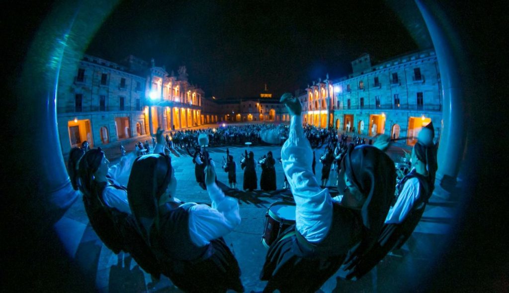 Banda de gaitas. Una posibilidad es hacer que los grupos toquen la gaita. Y por qué no el tambor, el acordeón y la pandereta. Cada participante puede aprender a tocar un instrumento y organizar un pequeño concierto. En el Museo del Pueblo de Asturias hay un espacio cubierto con capacidad para 400 personas que alberga esta actividad. La visita de este espacio etnográfico de gran interés puede completar una actividad que comience con explicaciones en torno a la colección de instrumentos del recinto.