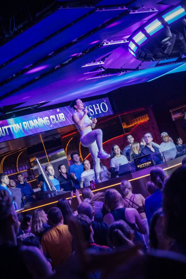 Lo diferencial llega al volver. Sutton no es solo punto de salida y llegada, es el corazón de la experiencia. Una vez completada la ruta, los runners regresan a la sala y arranca la llamada “healthy party”. DJ en cabina, luces activadas y marcas ofreciendo producto en un entorno que mezcla post workout y clubbing. Dependiendo de la edición, el contenido se adapta. En la próxima convocatoria, por ejemplo, tras el cardio se organizará una sesión de pilates junto al equipo de Edan Studios, pensada para todos los niveles. El entrenamiento se convierte así en espectáculo colectivo, con la energía de una pista de baile pero el enfoque de una comunidad deportiva.