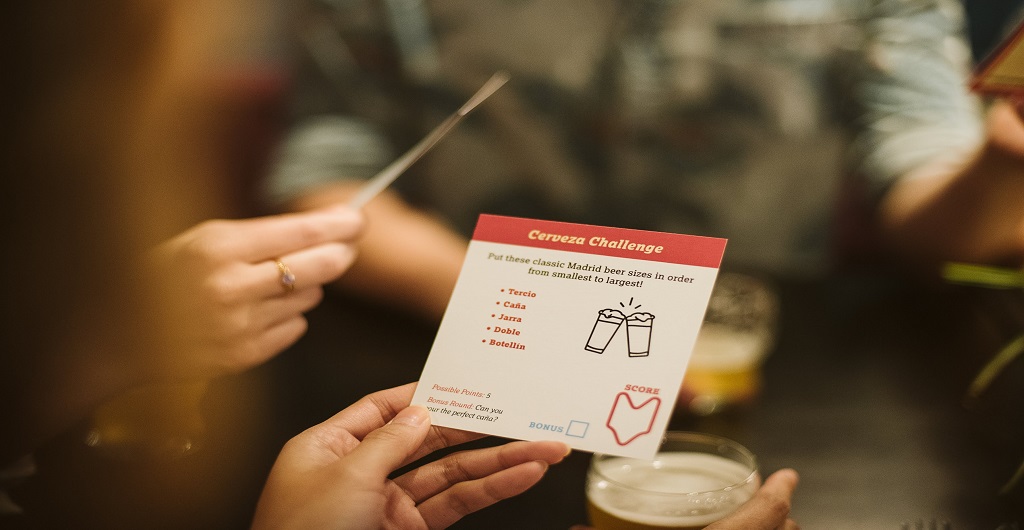 “El año pasado lanzamos un tour de team building que diseñamos específicamente para unir equipos a través de una serie de pruebas interactivas relacionadas con la gastronomía española”, nos señala Amy Bingham de Devour Tours. ¿En qué consistió? El día 3 de abril se organizó un Tapas Challenge en Barcelona para un grupo de 41 executivos durante su Global Leadership Meeting. “La organizadora quería una cena diferente que incorporara algo local, y que facilitara al grupo conocer mejor la ciudad de Barcelona tras estar todo el día en reuniones”, nos señala Amy. Empezaron en la Plaça d’Antonio López a las 19:00 dividiendo el grupo en tres equipos, dirigidos por un guía, cada grupo visitaba tres bares y en cada uno recibió un ‘challenge card’ con la prueba que el equipo tuvo que completar. En uno, aprendieron hacer pan con tomate, con su ajo, aceite y sal. Después compitieron en un relay y el equipo que preparó el pan con tomate más rápido, ganó los puntos. En otro bar (esta vez de dueños vascos) los equipos descubrieron las normas “no escritas” de tapear y ganaron sus puntos en un cuestionario súper divertido mientras probaban pintxos y txakoli. Y para la tercera prueba, visitaron un bar de vinos para poner a prueba su talento de catar a ciegas. Una vez que terminó los tres challenges, los grupos se juntaron en un restaurante en el barrio del Born. Con una copa de vino en mano, esperaban los resultados de la competición. Con 56 puntos, ¡Team Croqueta fue el ganador! Ganaba como premio unos dulces de la pastelería más antigua de la ciudad.