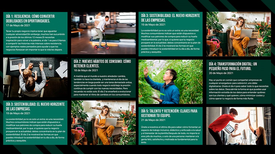 5 días y un sinfín de ideas para crecer. Pierluigi Collina, Samatha Vallejo-Nájera, Jordi Cruz, Rafael Gonzalo y Borja Adanero… Son solo algunos de nombres que, a lo largo de toda una semana, se unirán a #ThoseWhoDare para compartir su experiencia acerca de temas tan variados como sostenibilidad, digitalización, la salud en el entorno de trabajo…
