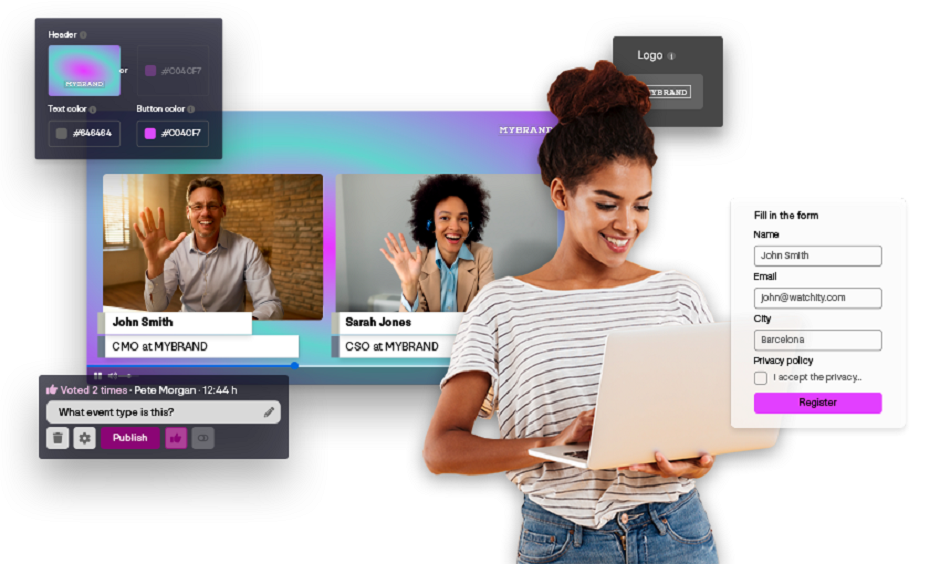 Watchity es la plataforma española de enterprise video engagement permite a las empresas crear eventos online de aspecto más profesional, más interactivos y con una mejor experiencia de visualización que las plataformas basadas en videoconferencia, para incrementar así el engagement de la audiencia y los resultados para la empresa.