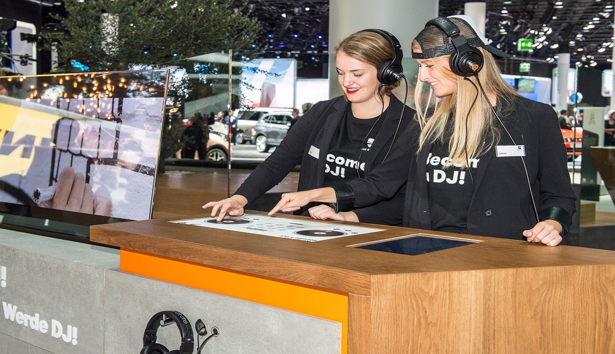 La premisa de hacer participar al visitante e interactuar con él también se lleva a las ferias del automóvil, y no necesariamente subiéndose al vehículo. La agencia La 5ª se encargó del stand de SEAT en el Salón del Automóvil de Frankfurt y, con el fin de generar interés y tráfico al stand, no dudó en crear cuatro variedades de zumos detox para disfrutar en el espacio, mientras el asistente se podía personalizar su funda de móvil y se lanzaba a hacer sus pinitos como dj en unos platos realizados con tinta conductiva, lo que permitía grabar su propia sesión, enviársela a su correo para escucharla y compartirla.