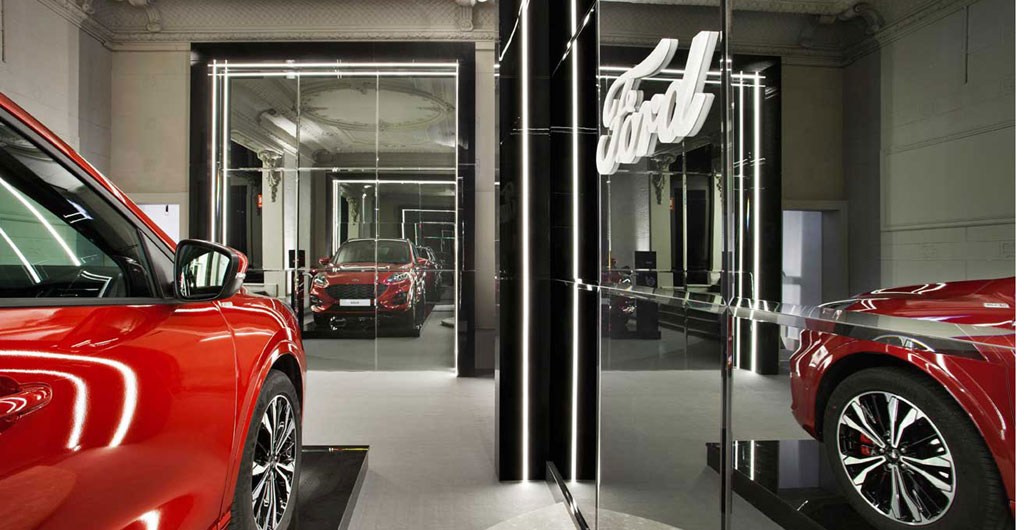 Paso de carruajes ‘Acercando el Mañana’ – espacio Ford España. ¿La explicación? Ford no se imagina como será el futuro, pero a través de este espacio lo crea gracias a sus soluciones de movilidad innovadora y sostenible, y el proyecto se inspiraba en un túnel cuyo punto final es el futuro. Además, Ford apuesta por la sostenibilidad y por minimizar el impacto humano en el medio ambiente y para eso presentó en Casa Decor el “Ford Kuga”, el primer vehículo electrificado con etiqueta ‘cero emisiones’ fabricado en España.