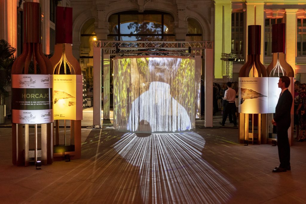 Los asistentes se encontraron una zona expositiva con la trayectoria de la bodega, las botellas reproducidas en cartón reciclado y con 4m de altura y una pantalla inmersiva con forma de elipse a la que uno accedía e interactuaba mediante una tablet gigante, según nos cuentan desde Avant Events.ep