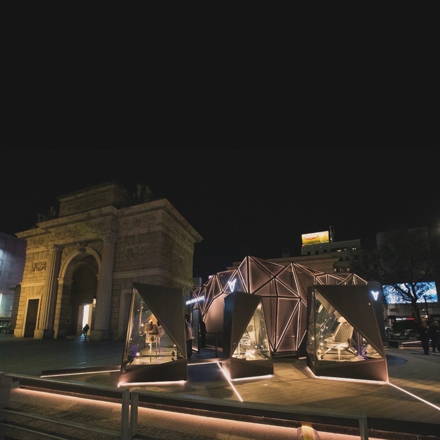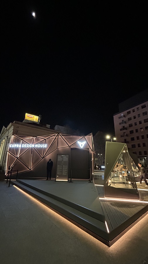 Como extensión natural del CUPRA City Garage diseñaron cuatro prismas que emergían del suelo a modo de exposición museística exterior. Cada una albergaba prototipos exclusivos de la nueva CUPRA Design House. Estos prismas expositores, que combinaban caras transparentes con otras acabadas en el mismo material que la fachada, fueron una muestra más del cuidado por el detalle y la coherencia formal del proyecto. Diseño dentro del diseño.