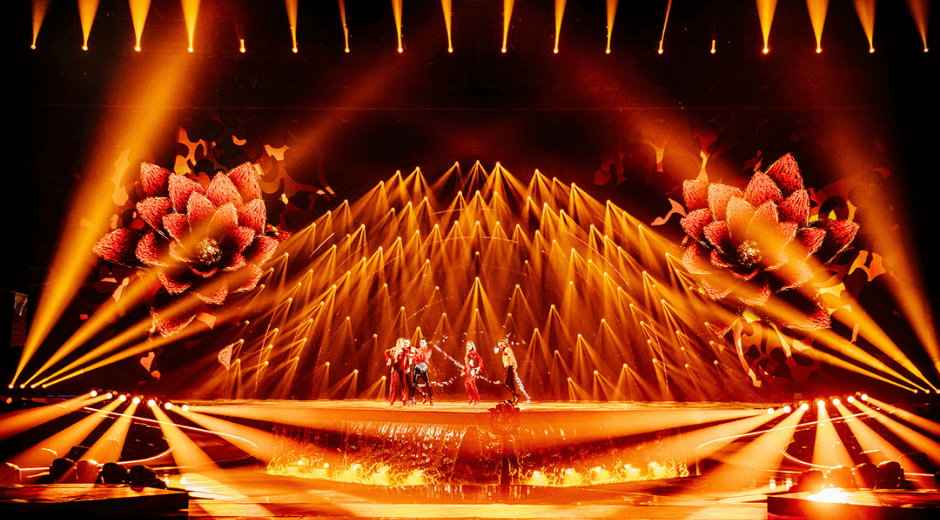 El late motiv de esta edición era ‘The Sun Within’, que fue diseñado por la artista Francesca Montinaro y basado en la luz del sol cinético. Ya te contamos que la enorme estructura que representaba este sol, finalmente no se pudo utilizar tal y como estaba concebido, así que en pocos días se tuvieron que hacer cambios de última hora. Afortunadamente, la gala transcurrió sin incidentes y el escenario del Palasport Olimpico de Turín brilló con luz propia, y lo digo en un sentido literal. En total se usaron 2.821 luces distribuidas por el escenario, de las cuales, más de 400 pertenecían a la marca Clay Paky, distribuidos en exclusiva en España por Stonex. Para que te hagas una idea de la dimensión, se utilizaron 1.000 más que el año pasado. Mejor no preguntar por la factura de la luz…