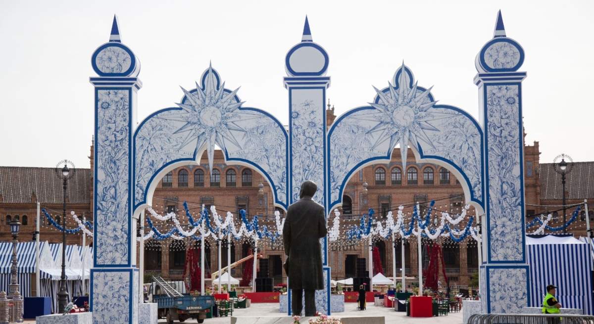 Para la ocasión, este icónico espacio monumental se transformó para el evento: en la plaza se instalaron sillas y casetas para los asistentes vips, ¿en total? Un espacio de 1.620m2 y 900 personas sentadas. Se habilitaron tres aseos químicos y la creación de Aníbal González no sufrió más añadidos que los propios de iluminación, sonido y decoración, que irán en sintonía con el monumento.