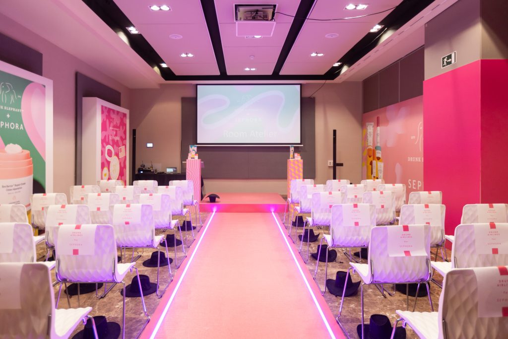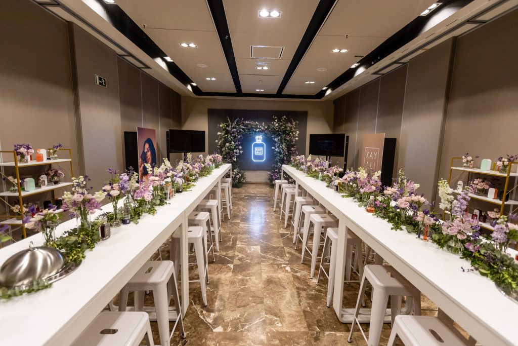 Las dinamizaciones, cartas de presentación para las marcas. Cada marca creó un universo específico para su presentación que contó con una hora de formación intensiva de cada una. La marca Drunk Elephant por ejemplo, realizó la formación que simulaba cómo los asistentes viajaban en avión a un destino que les recibía con bailarines de country. Color Wow, por su parte, simuló un backstage dónde recreaban paso a paso los looks tan fotografiables que son insignia de la marca. También se pudo ver un laboratorio floral que Kayali trajo para presentar sus nuevas fragancias, cuyos ingredientes principales fueron “introducidos” en cuatro postres diferentes que los asistentes tuvieron que catar para poder adivinar de qué se trataban.