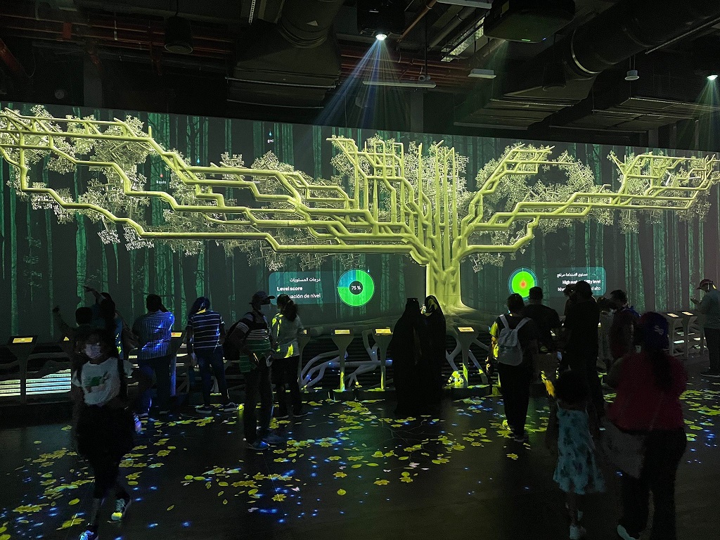 Por su parte, el ‘Bosque de la Inteligencia’, en la planta soterrada, está formado por árboles fabricados con un material especial que absorbe el CO2. Se trata de un espacio metafórico en el que, a través de diversas aportaciones españolas innovadoras, se muestra cómo el país se suma a la Agenda 2030 para el Desarrollo Sostenible y contribuye a la protección y uso sostenible de los recursos naturales.