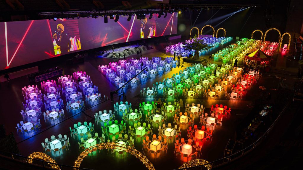 Europalco implementó una gama de tecnologías audiovisuales, escenografía y mobiliario, convirtiendo el MEO Arena en un espacio inmersivo para los 3.000 asistentes, incluidos empleados y socios comerciales de todo el país. En colaboración con Desafío Global, el objetivo era crear un evento en el que el sonido desempeñara un papel clave para cautivar al público.