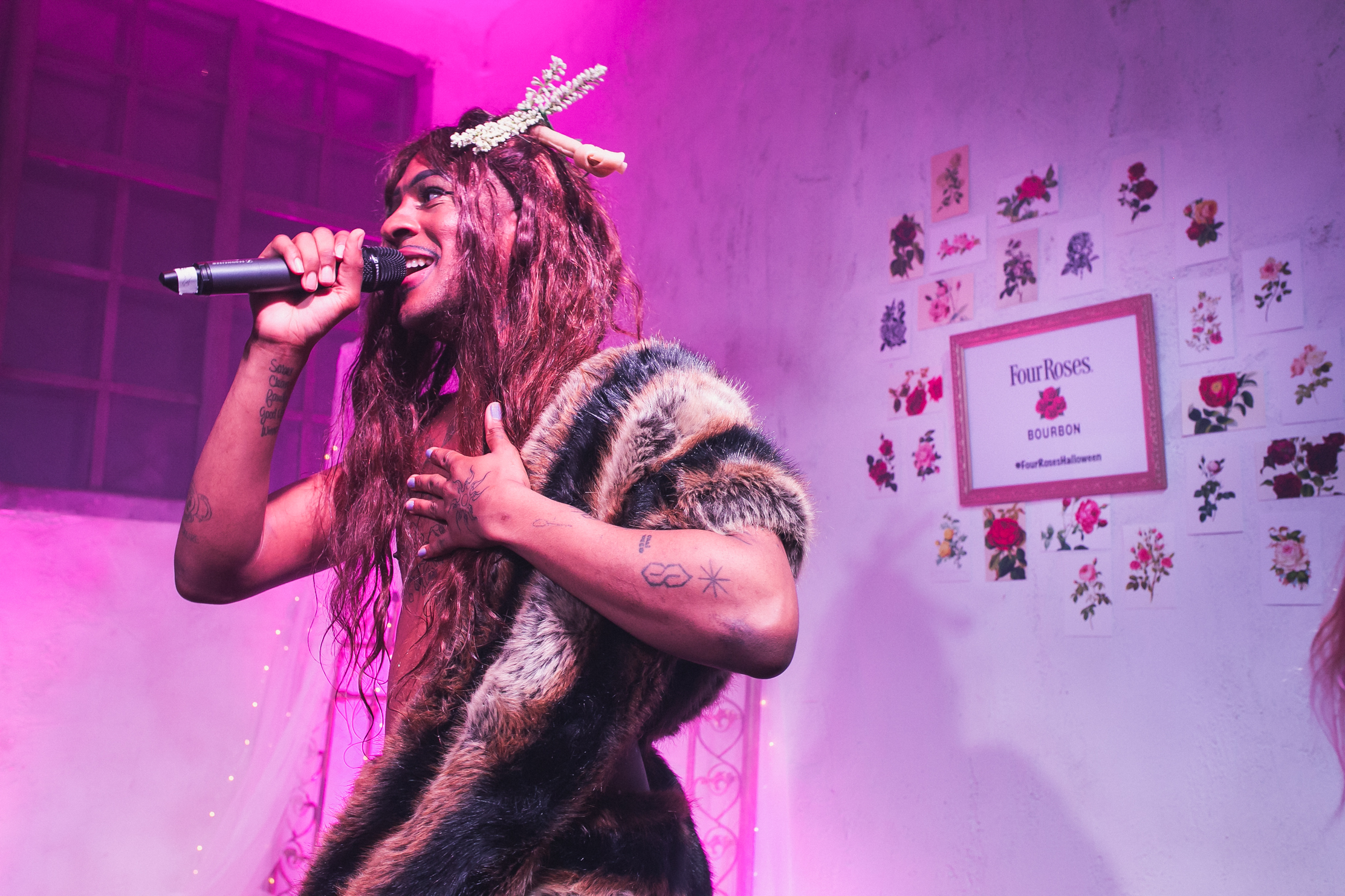 La agencia Pelonio fue la encargada de organizar para Four Roses ‘Not another Halloween party’, contando con el rapero y artista norteamericano Mykki Blanco que actuaba como anfitrión con un concierto performance. Para ello se decoró el espacio como un loft estilo americano, como si fuera la casa donde el artista celebrara su propia fiesta  privada de Halloween con amigos. Referencias de películas de terror americanas, un buffet con comida americana y el artista actuando desde la cama.