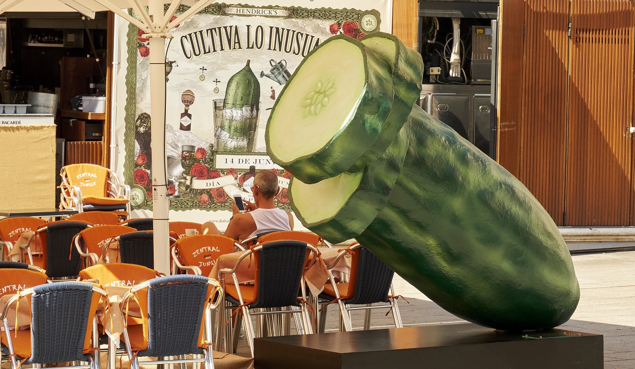 El pasado 14 de junio era un día marcado en el calendario de los entusiastas del pepino ya que se celebraba el Día Mundial de esta hortaliza y esta singular fecha fue aprovechada por la ginebra Hendrick’s para llenar de pepinos gigantes las calles de Madrid. Un día inusual que tuvo como protagonista al ingrediente protagonista del proceso de destilación de la ginebra, sirvió para generar una acción de street marketing que finalizó con una fiesta en honor al universo del pepino.