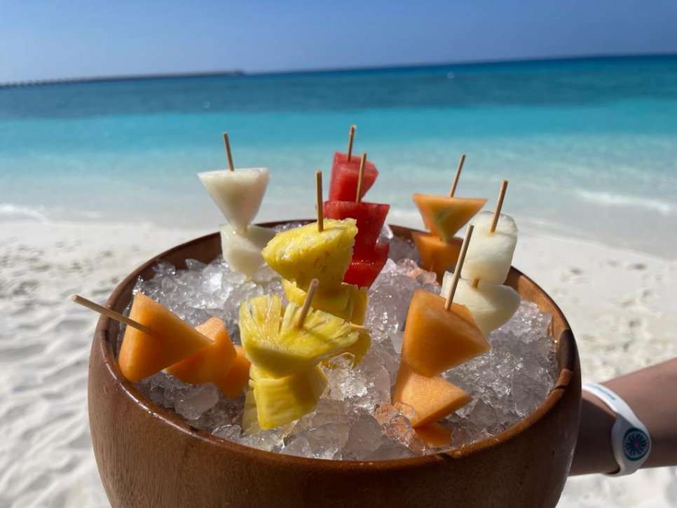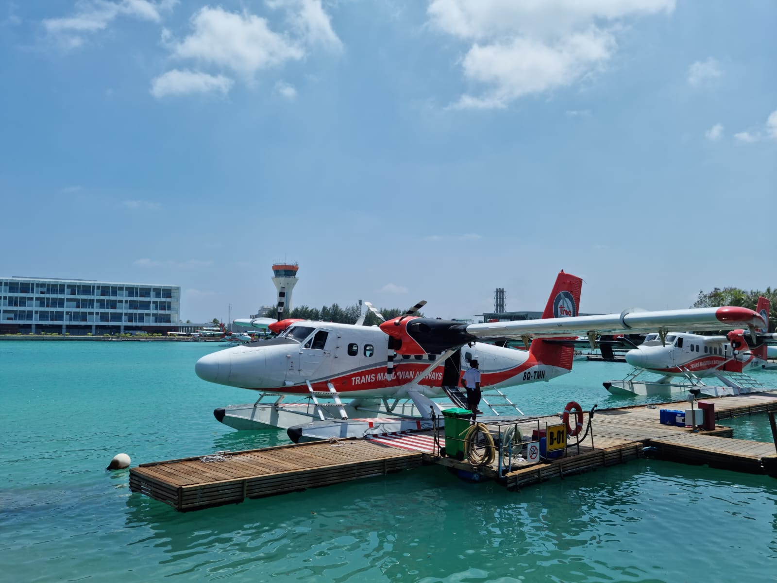 El primer día el grupo llegó al destino en un hidroavión hasta el Hotel Finolhu (ubicado en el atolón Baa que es reserva de la biosfera), se trata de un hotel ideal para grupos por su amplia disposición de villas tanto en la playa como sobre el agua, así como diferentes opciones de restauración desde cenas en la playa, y restaurantes de diferentes estilos de cocina como japonesa o del norte de África. Una vez hieron el chek in, tuvieron un almuerzo de bienvenida en Beach Kitchen. Descanso y por la noche cena bienvenida estilo barbacoa en la playa del hotel.