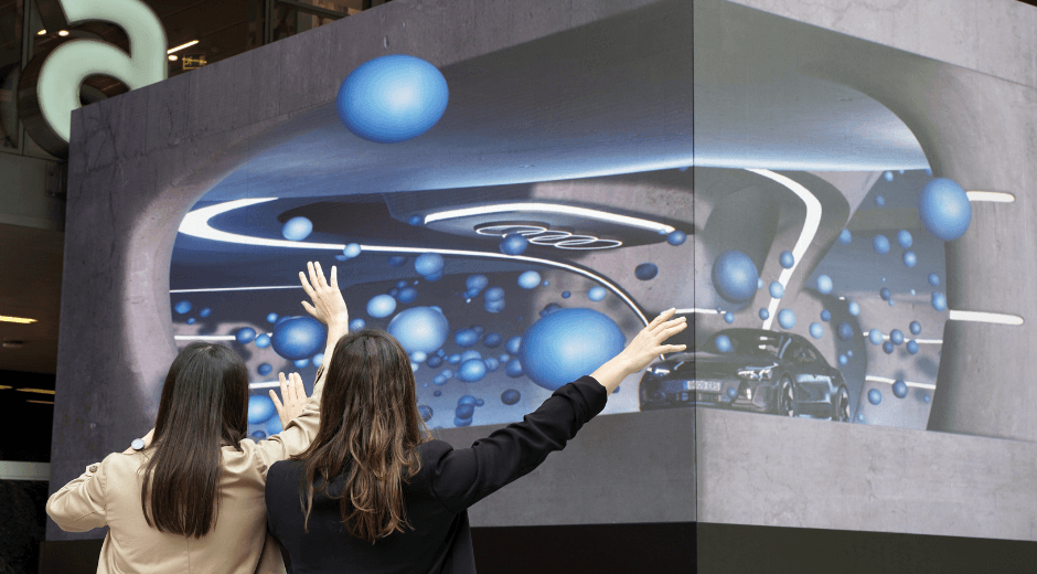 Los usuarios no solo visualizaban el vehículo a escala 1:1 en las pantallas, sino que también podían interactuar con él mediante una conexión con las pantallas totalmente inmersiva que utiliza inteligencia artificial. En la parte superior de la estructura, instalaron una cámara que escaneaba a la persona y capturaba el movimiento del cuerpo para luego procesarlo con un módulo de IA. De esta manera, al levantar los brazos o señalar a derecha o izquierda tenía una respuesta en la pantalla guiada por el usuario y haciendo que la experiencia fuera personalizada.