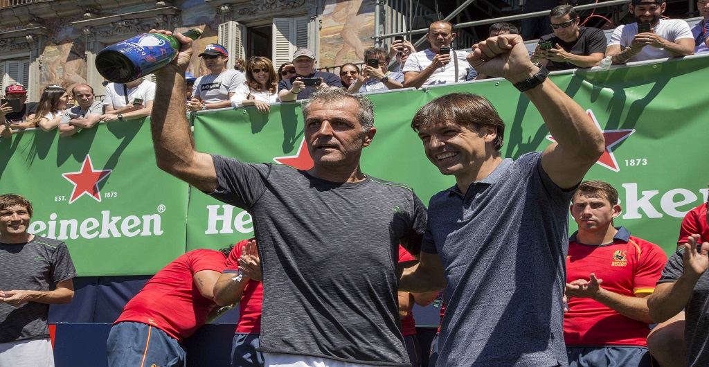 Un aperitivo pre Champions. Con motivo de la celebración en Madrid de la final de UEFA Champions League, Heineken retó a grandes leyendas del fútbol a enfrentarse en un partido que combinaba el mejor fútbol con ‘touch rugby’. Un choque en el que pudimos ver la destreza de estas figuras para formar una melé y defender el esférico ante el empuje de un rival diferente acostumbrado no a defender sino a placar. ¿Los contrincantes? Las leyendas del fútbol Vicente, Andrés Palop, Juan Sánchez, Miguel Ángel Nadal, Julio Salinas, Benjamín Zarandona, Milinko Pantic y Rafa Martín Vázquez contra siete valientes jugadores profesionales de rugby (Nacho Heredia, Santi Ovejero, Brad Linklater, Jano Cheer, Ramiro Robledo y Agustín Vergara) liderados por Jaime Nava, capitán de la Selección Española de Rugby. El resultado: 105 en el tiempo de rugby para la Selección de Rugby y 4-7 en el tiempo de fútbol para los exfutbolistas.