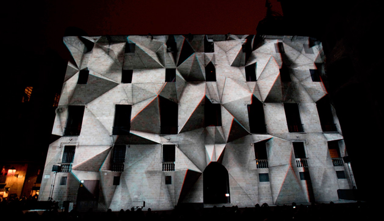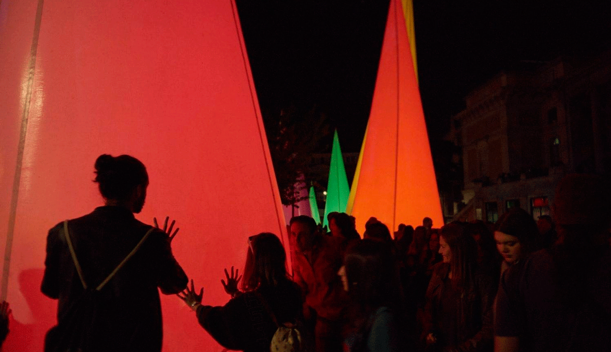 Una escultura para tocar y crear. Dentro del Paseo se encontraban los cubos de LED que formaban un conjunto escultórico que invitaba al público a usar sus manos, brazos o el cuerpo entero para que con su movimiento controlar los gráficos y el patrón sonoro y de luz de la instalación.