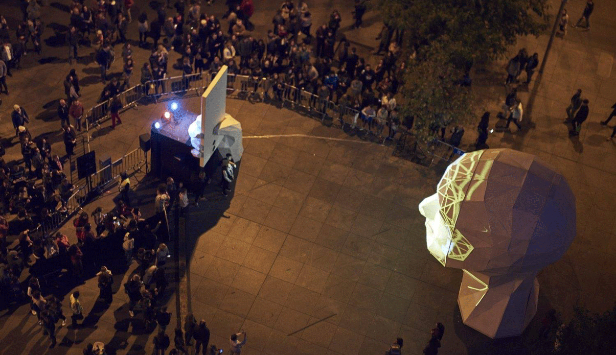 Narcissus. Delante del edificio del Ayuntamiento se instaló una escultura formada por una gran cabeza de siete metros que simulaba estar tomándose un selfie. El público le imitaba y pasaba a sacarse una foto, y a través de un casco conectado se transmitía y proyectaba en tiempo real sobre la cabeza-escultura, llenando con la cara del fotografiado la escultura.