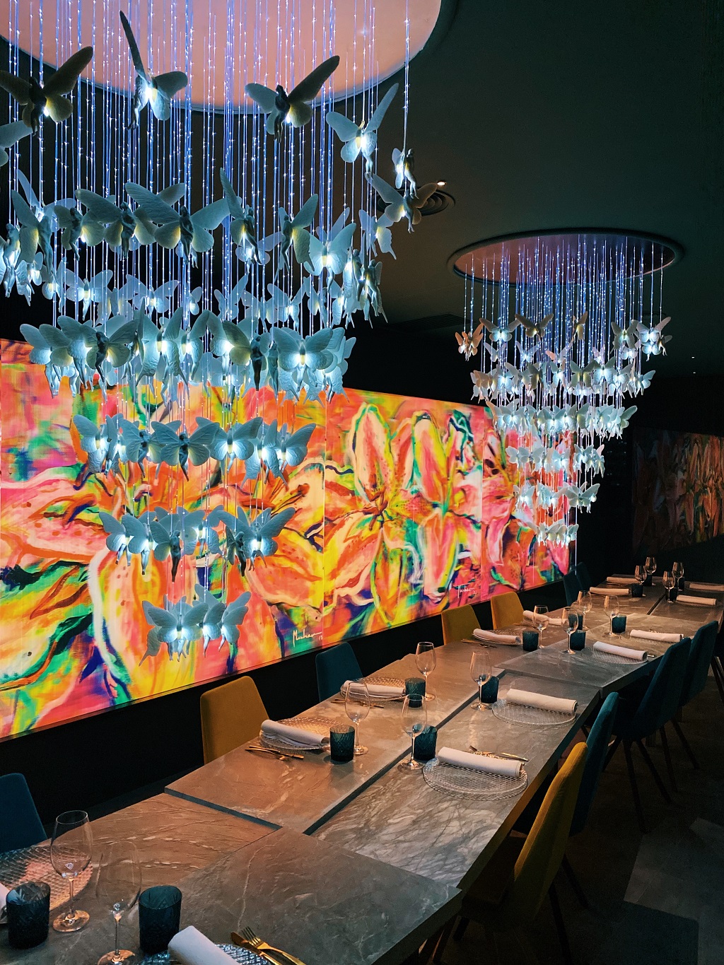 “Después de ver la exposición, te puede quedar a tomar algo en cualquiera de los cinco espacios inspirados en la naturaleza”, nos señalan desde Life Gourmet. Un diseño ecléctico, orgánico y dinámico donde los colores llenan de belleza cada rincón. Además, el servicio de cenas está abierto al público… El arte, la arquitectura, el diseño y la gastronomía se fusionan en la Plaza de Canalejas para crear una experiencia que rompe la norma de lo establecido.