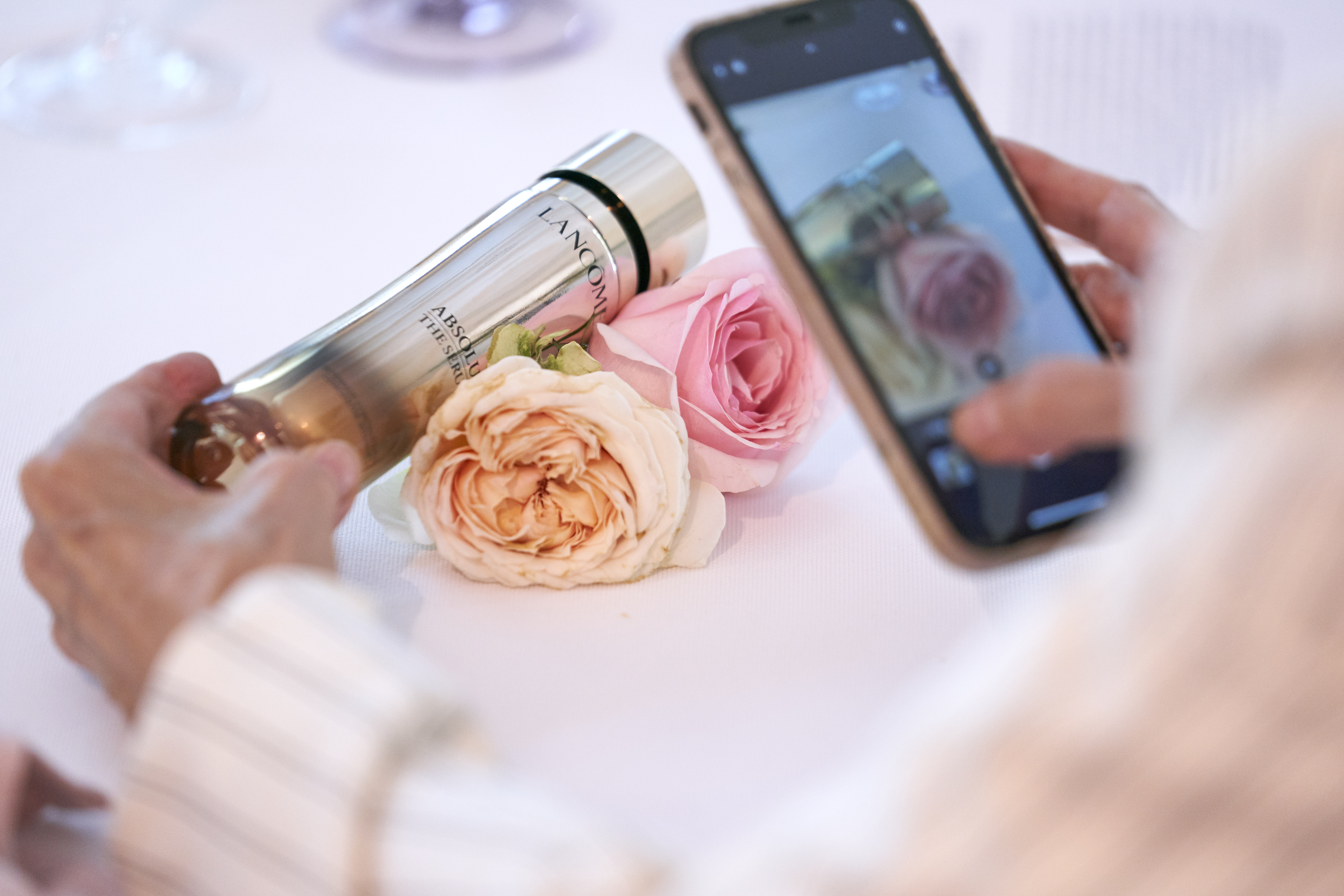 “Lancôme nos pidió un evento presencial porque consideraban que era la manera perfecta de reunirse con beauty experts y que conociesen el nuevo producto en persona, viéndolo, oliéndolo, y dándole la oportunidad de probarlo y resolver dudas, con todas las medidas de seguridad y test de antígenos en la entrada”, nos cuentan desde Inusual. La marca llevó a cabo eventos presenciales en otros países y todos se conectaron simultáneamente con un plató en Francia desde donde expertos hablaron de ABSOLUE, sus propiedades y sus beneficios. En total, aproximadamente 400 key opinions leaders disfrutaron de esta experiencia de marca.