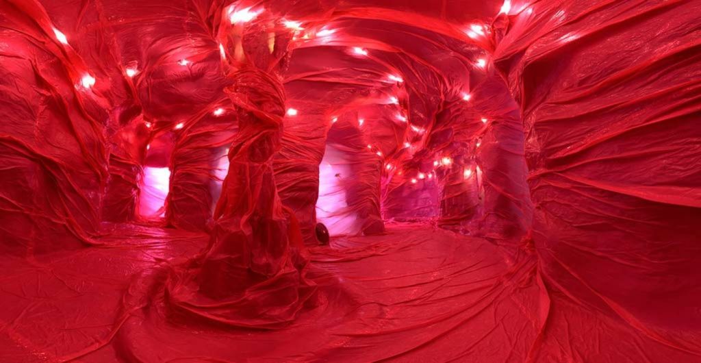 Y es en la madrileña sede del Colegio de Arquitectos donde Urvanity despliega sus obras, además de albergar diferentes acciones en las que ha tenido a Mahou como marca colaboradora. Por ejemplo, la cervecera ha participado de la mano de los artistas Penique Productios montando el Espacio Mahou dentro de Urvanity. Una instalación efímera basada en un hinchable que se expandía e invadía por completo la sala de conferencias del COAM. Este globo crece hasta juntarse con la arquitectura existente jugando con la presión del aire y los elementos estructurales de la sala, transformando el espacio también gracias a los contrastes de texturas y la iluminación roja siguiendo el branding de Mahou. Un espacio de marca que es una obra de arte en sí, al que se podía pasar a tomar una cerveza tras visitar la zona de exposición de obras y que también sirvió para acoger las BSA Talks. Un programa de charlas patrocinadas por la marca sobre street art, arte urbano, graffiti y nuevo arte contemporáneo que han dado cita a artistas, profesionales, académicos y visionarios debatiendo sobre el futuro de la escena artística.