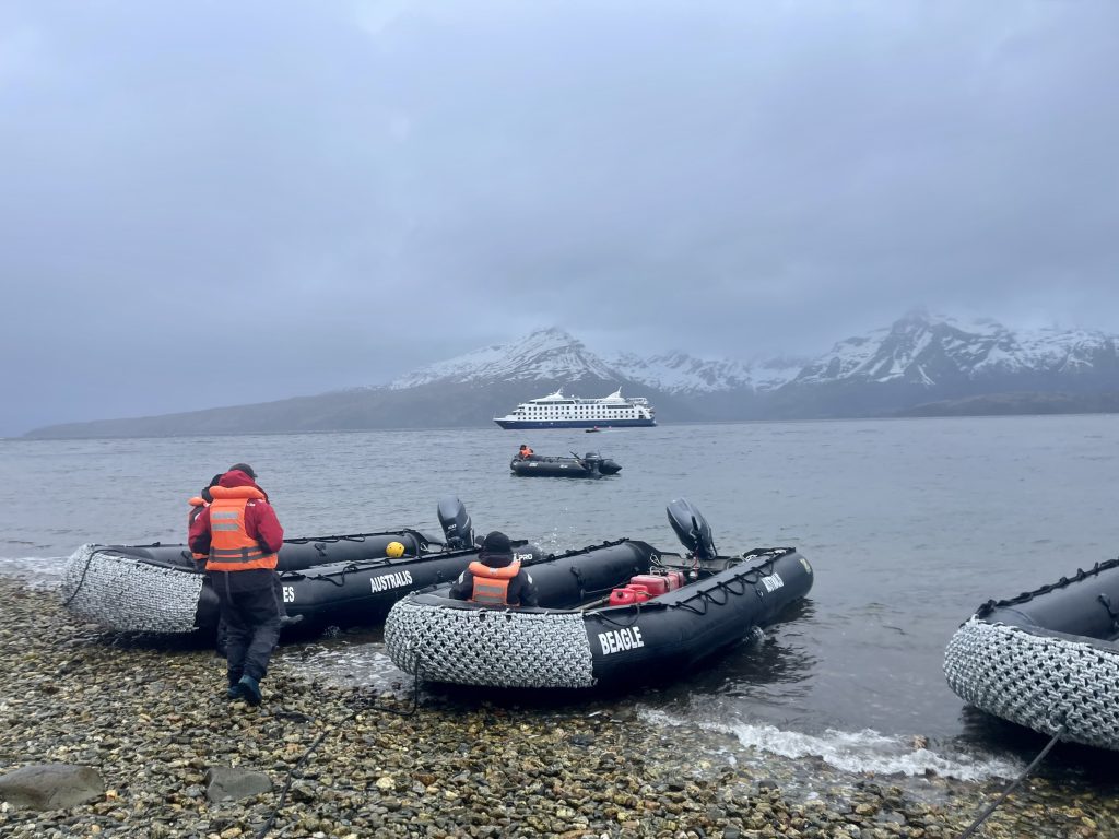 Tras un almuerzo a bordo y algo de tiempo libre… desembarcaron en la bahía Wulaia para un paseo de trekking por la naturaleza de isla Navarino y los yacimientos del desaparecido pueblo yámana; divididos en tres grupos según nivel de dificultad. La cena a bordo fue seguida por karaoke y música con Dj.