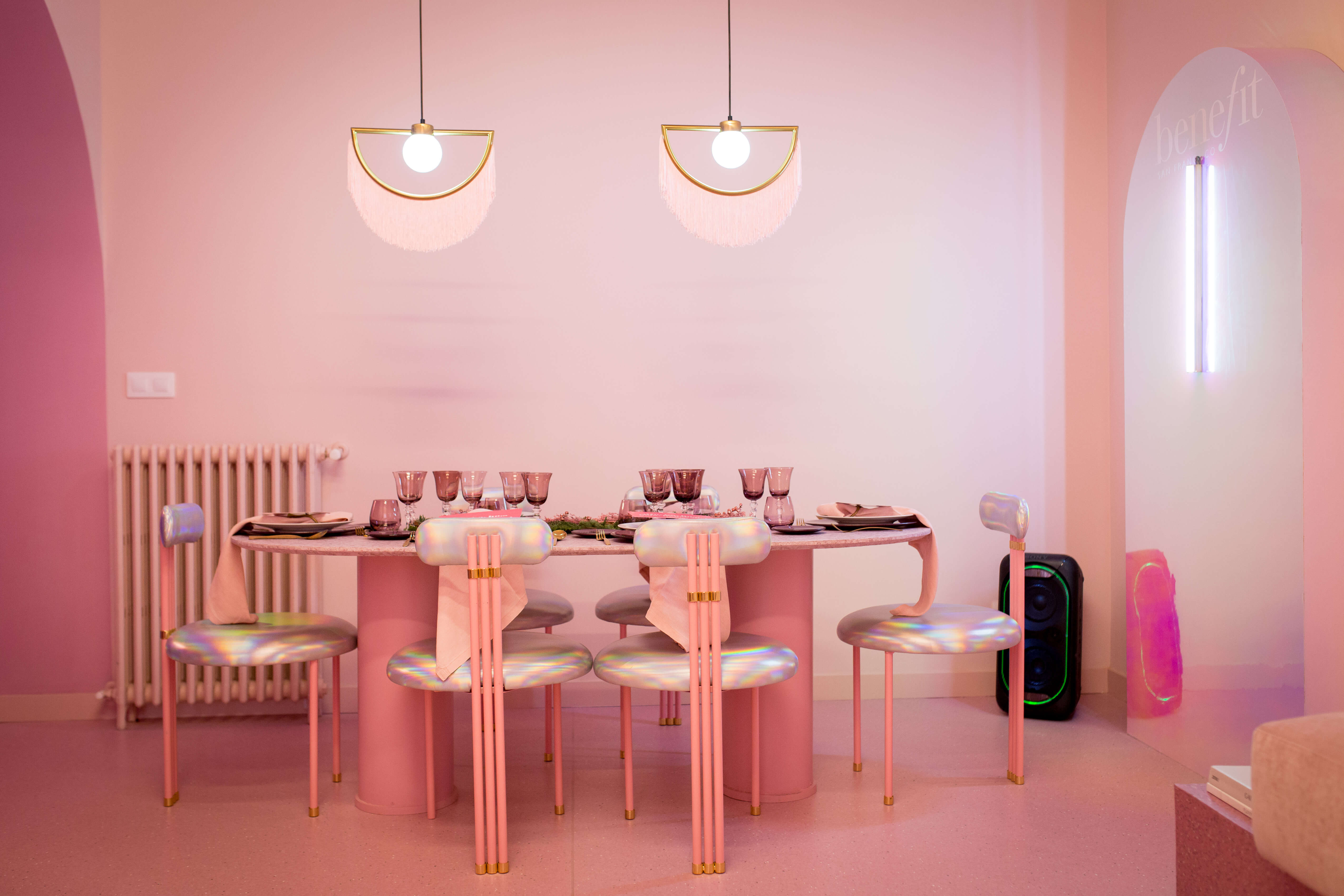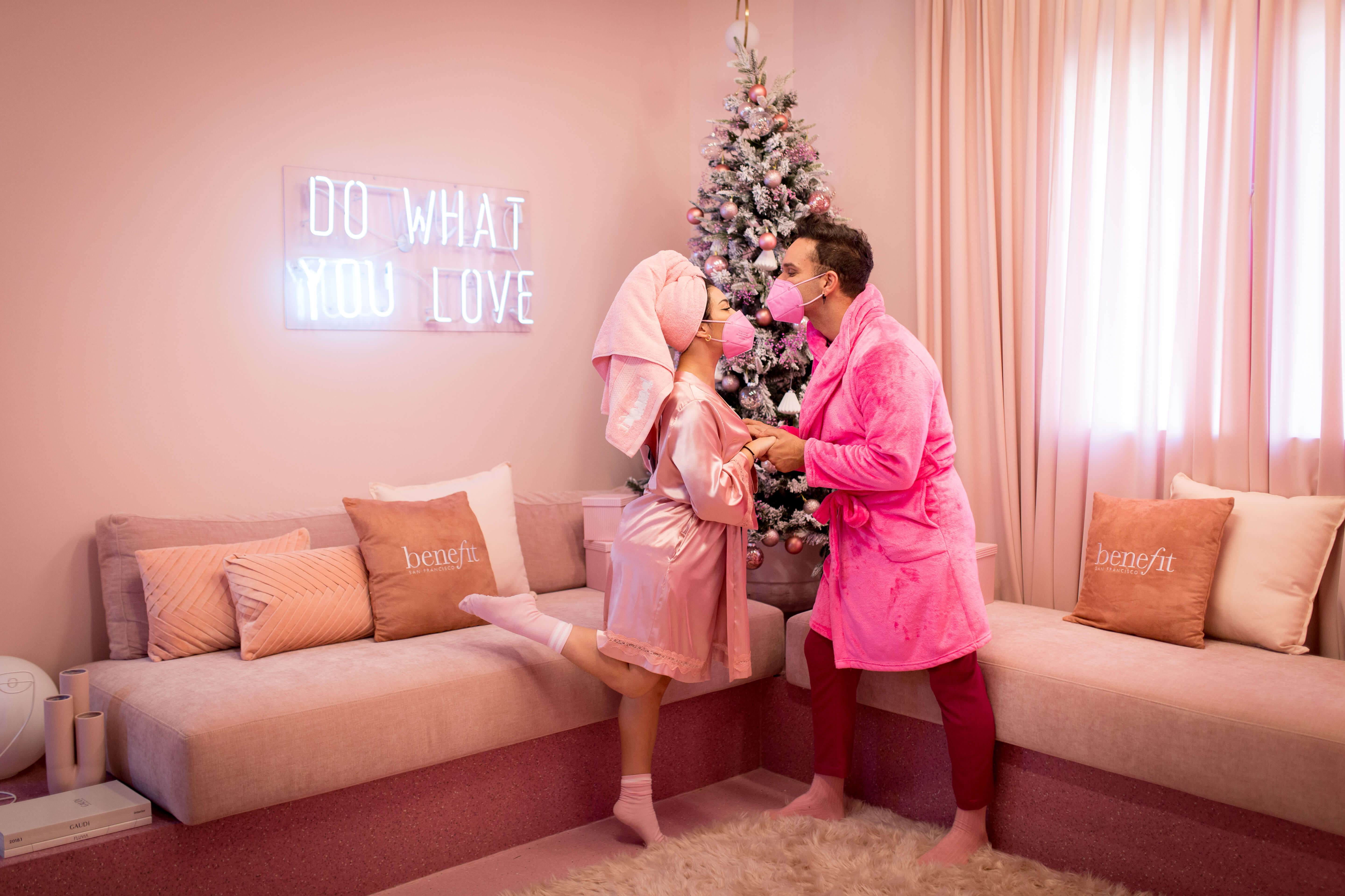 Un espacio mágico, que a pesar de contar con unos 60m2 habitables, “convertimos en el pequeño hogar de las benebabes por un día”, nos señalan de la agencia. Un árbol de navidad gigante, una chimenea hecha a medida y miles de detalles de atrezzo (todo de color rosa) fueron los elementos que utilizamos para rebautizar La Casa Rosa como la Casa Benefit. «Y emocionar y entretener a los asistentes, contagiando el espíritu navideño de estas fechas”, nos señalan de la agencia.