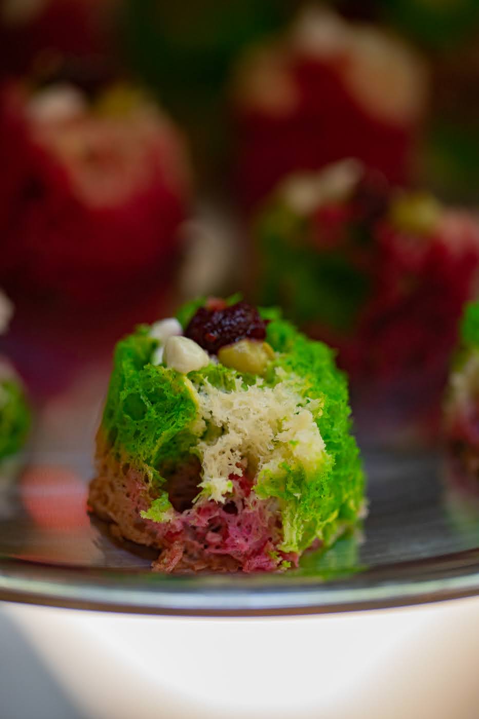 Para crear un universo de formas y color en este evento celebrado en la Llotja del Mar y el Museu Maritim de Barcelona, Food & Mambo jugó con una combinación de técnicas de cocina muy nuevas, como fosilizaciones, nubes y corales, consiguiendo una experiencia instagrameable pero sabrosa al mismo tiempo. Aplicaron los colores corporativos del cliente, pinceladas moradas y azules para conseguir impactos inconscientes.