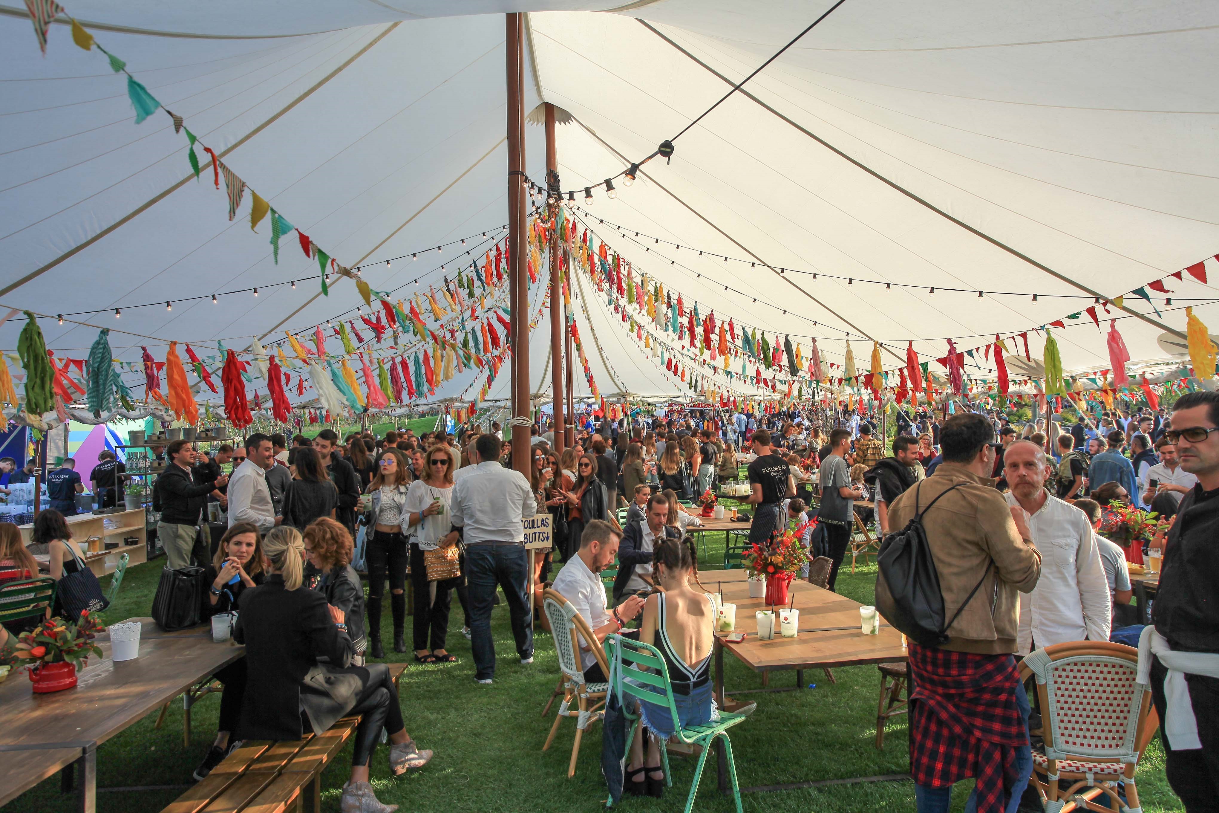 En los jardines se montó una carpa inspirada en el mundo del circo que hizo las veces de escenario central para las actuaciones y as u alrededor diversos puntos de actividades, zonas de relax, photocall y foodtrucks de gastronomía nacional e internacional.