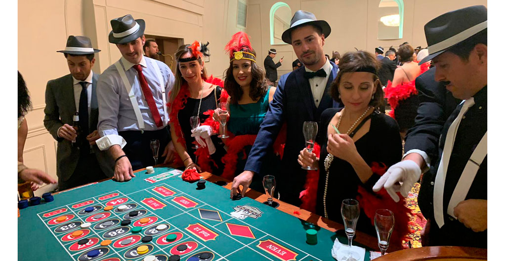 Los días pasaban y no había rastro del producto robado así que había que buscarlo de una forma diferente… y por todo lo alto. Tras el desayuno, dos autocares sin destino conocido por el grupo, les llevaron en 20 minutos a una explanada con hangares. “Fue un momento muy bonito ver las caras de sorpresa, emoción e ilusión al descubrir que les habíamos preparado un viaje en helicóptero sobre Chicago con la premisa de buscar el producto robado”. La experiencia, entrevistas y grabaciones desde el aire dieron paso a la comida en el Hard Rock Café. Allí Alex les informó de que esa misma noche tendría lugar en un antiguo speakeasy y casino real de Al Capone, la fiesta internacional en la que se subastaría el producto robado y para la que hacía falta invitación. ¡Los Ocean´s Seventy Five entraban en juego! Alex y David ‘robarían’ los dos tranvías que llevarían a los invitados reales a la fiesta. Recogerían a los clientes en su lugar, y estos, elegantemente vestidos con trajes de los años 20, se harían pasar por los invitados. Y así fue.