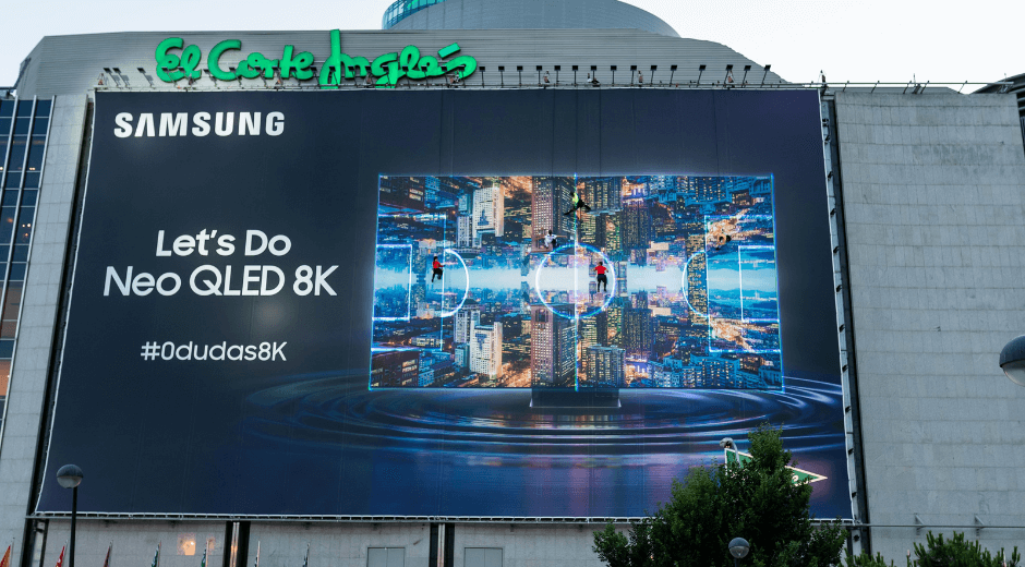 El futbol es un territorio que llama mucho la atención de las marcas por su poder de convocatoria y su elevado número de audiencia, ahora la tendencia es aportar valor más allá de una valla publicitaria o de un anuncio durante la media parte de un partido. Por eso, Samsung Electronics ha querido sorprender a los viandantes de Madrid con una activación de altura, organizada por Last Lap. Y lo digo literalmente, ya que han realizado un partido vertical en la fachada del Corte Inglés de Castellana. En declaraciones oficiales, Nacho Monge, director de negocio de consumer electronics en Samsung Electronics, ha afirmado que “en Samsung damos vida a las pasiones de los usuarios, y el fútbol es la piedra angular de la pasión deportiva en todo el mundo”. Por eso, el objetivo de la marca es mantener viva la pasión del fútbol en los meses previos a las competiciones que se celebrarán a finales de este año.
